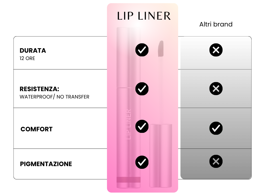 Nella tabella comparativa qui sotto mettiamo a confronto durata, resistenza, comfort e pigmentazione, così potrai vedere con chiarezza la differenza. Una panoramica trasparente e professionale per scegliere solo il meglio per le tue labbra.